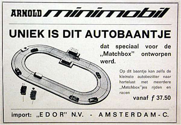 Case #7 Arnold 'Minimobil' Although commonly known for their 1/160 (N-scale) model trains, Arnold from Germany actually had their own version of the Matchbox Motorway sets for sale from the late 1960s to the early 1970s. The sets were sold under the Arnold 'minimobil' name and contained boxed Matchbox cars from the either the 'Regular Wheels' or the 'Superfast' series.