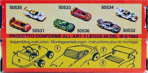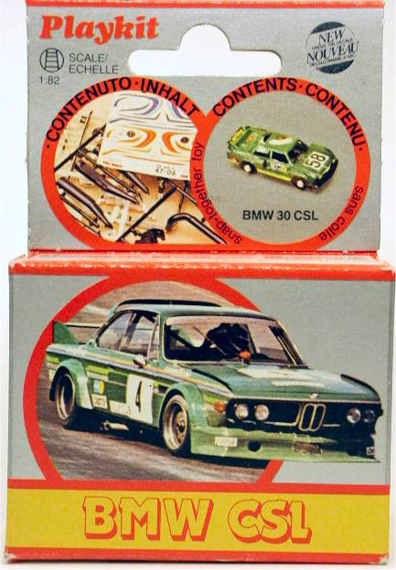 Case #6 Here it is....., another puzzle. According to the box this 'Playkit' builds you a BMW CSL model in race trim in 1/82. We think it looks like a BMW 3-series in Group 5 trim though, and that the scale of the two models in the box is close to 1/100 to 1/110 because the model is just 32mm long. The sheet of dry transfers pictured below is also included. Several other models have also been released in the same series (as you can see in the picture above), we have been able to identify these and another series of roadcars sofar: