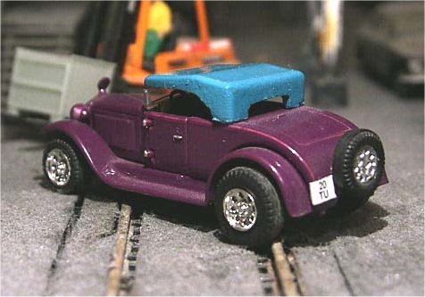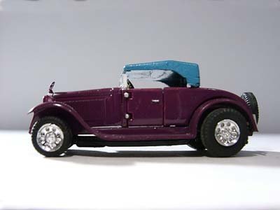 mudguards. After painting, I chopped the windscreen and the 'canvas' top to give the model
