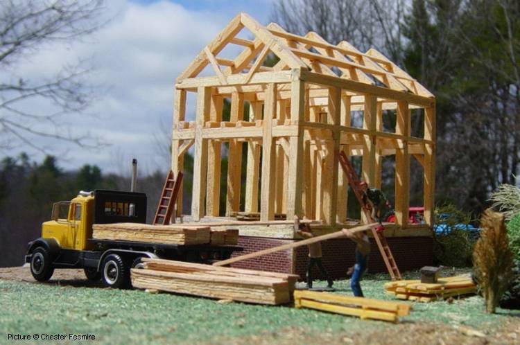 Fesmire. The barn is scratch built and the truck is an Athearn W900 Kenworth