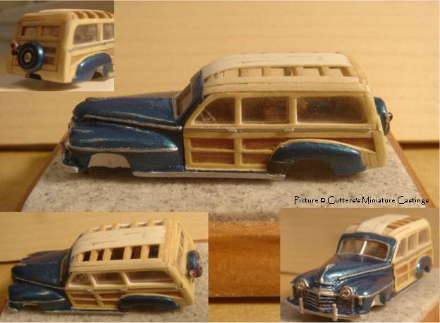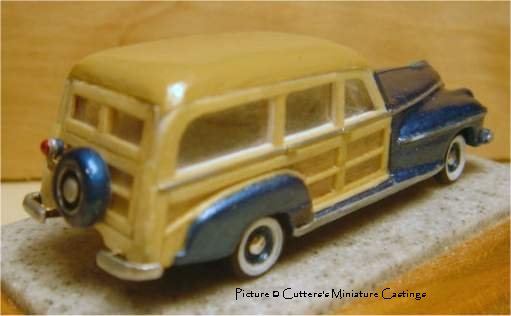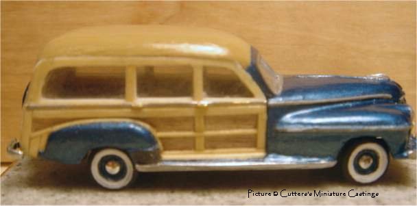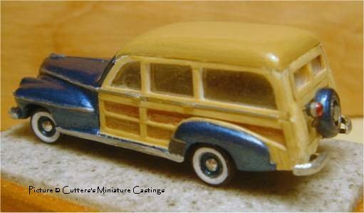 The Wooden Woody Built by Jerry of Cutters Miniature Castings, this one of a kind 'woody' is made of bass and birch wood. It has a full interior with the middle and back seats removable, a complete dashboard and the steering wheel even has the logo on the horn button.