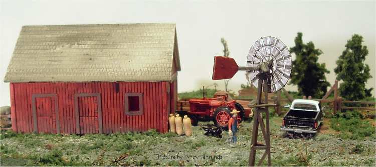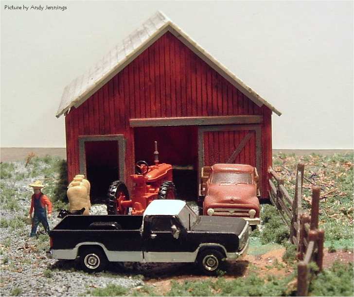 HO Vehicles Yahoo group. This farm diorama was built by Andy Jennings.